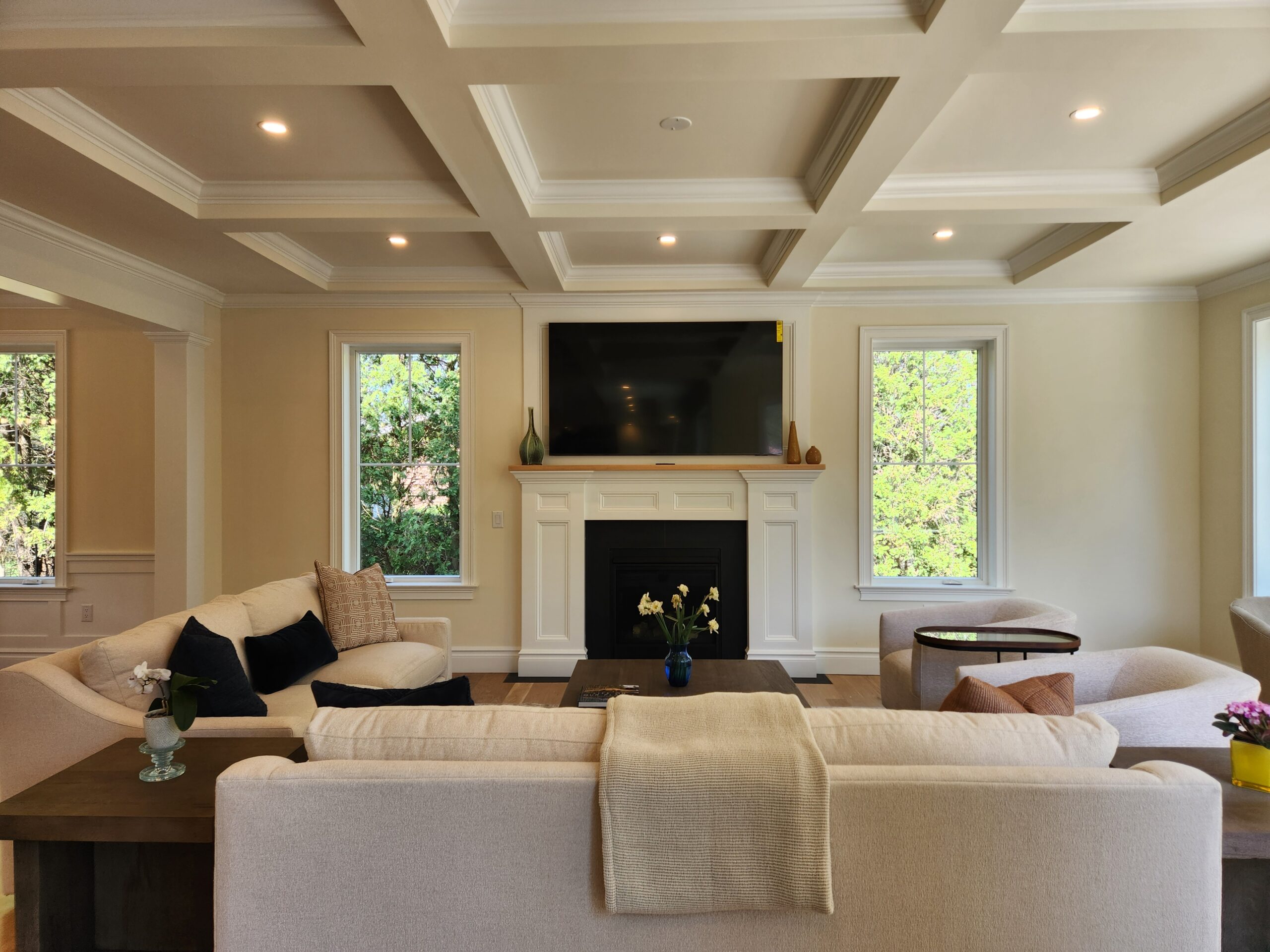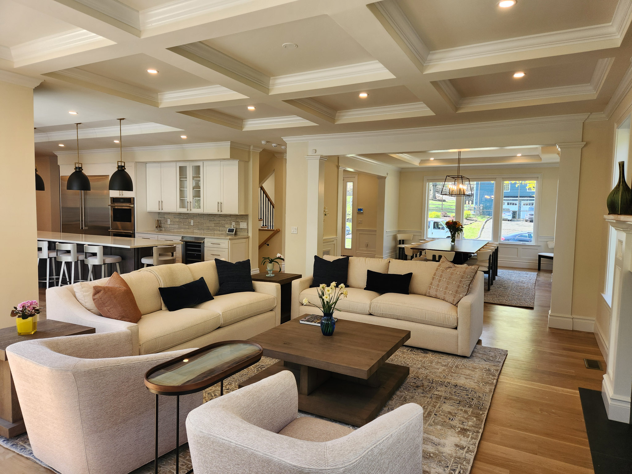 Ceiling Details: Coffered ceiling in great room and tray ceilings in dining room & kitchen island